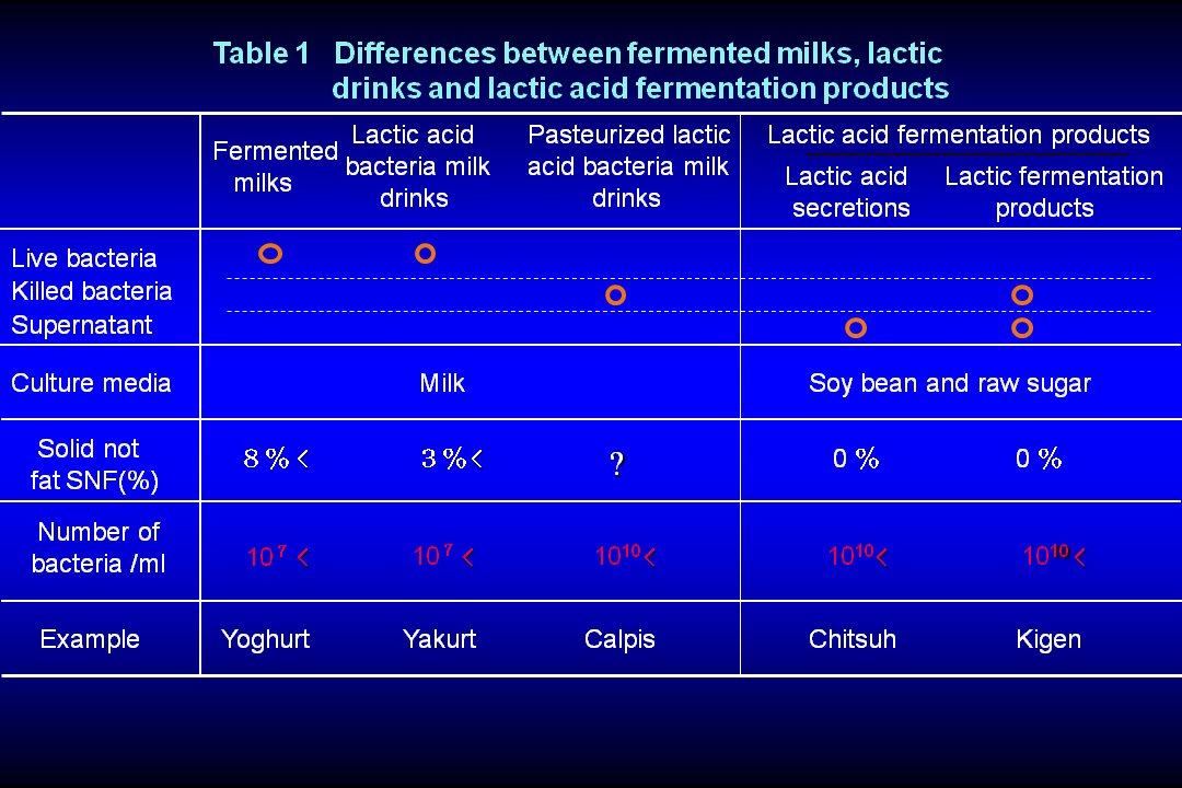 Differences between Fermented Milks, Lactic Drinks, and Lactic Acid Bacteria Products